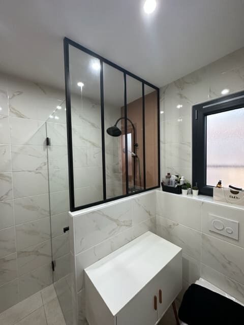 NOUS PROPOSONS DES PAROIS DE DOUCHE EN VERSION FIXE, COULISSANTE ET BATTANTE, AVEC DES PANS COUPÉS OU DROITS, SELON VOS ENVIES.