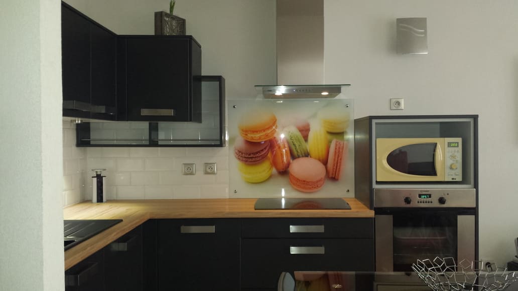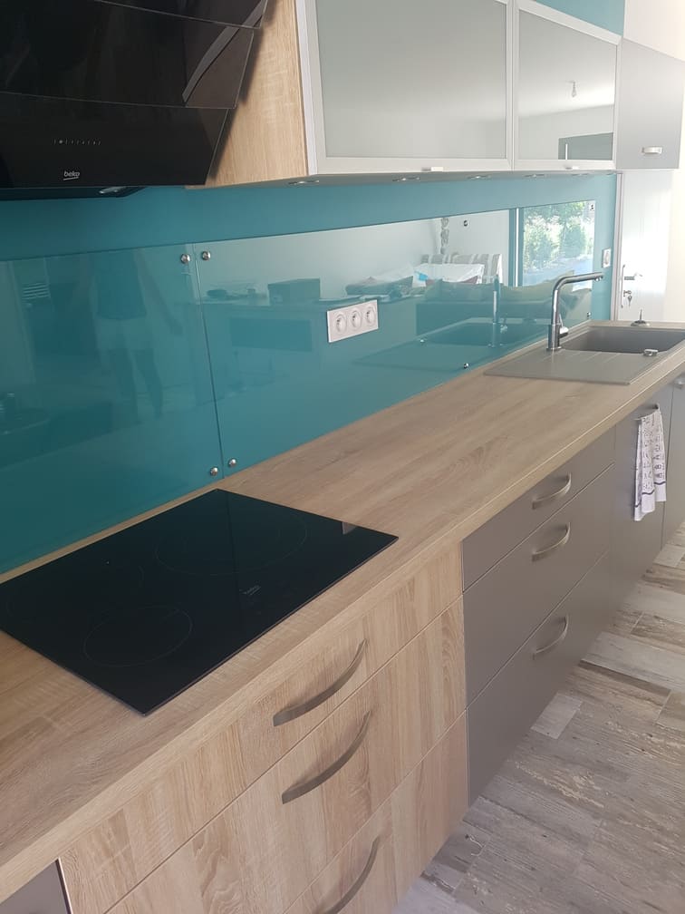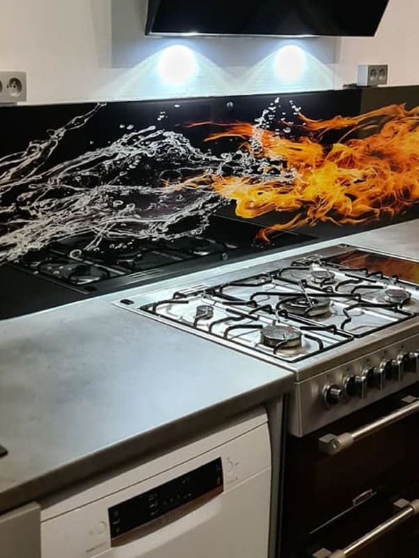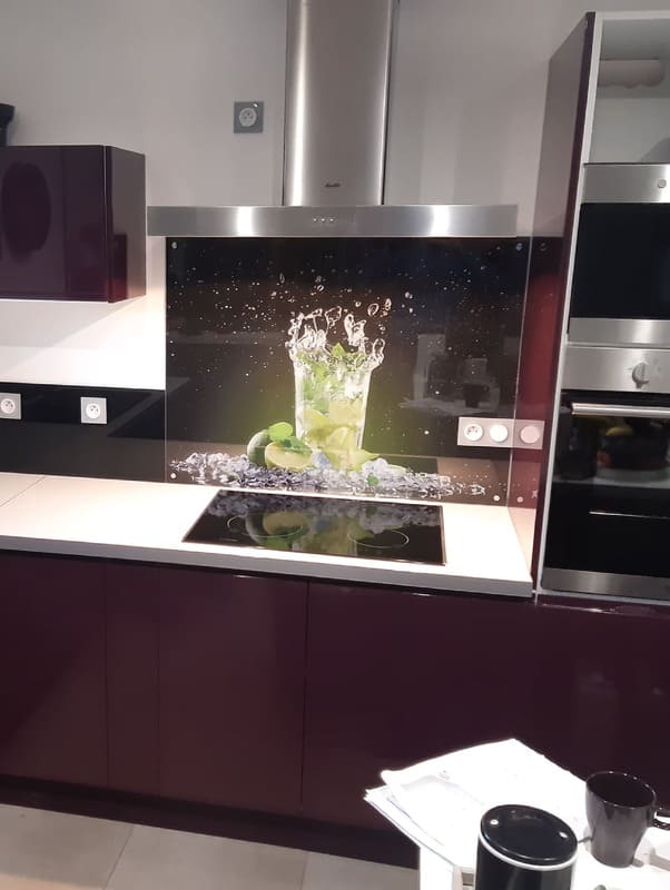 Le verre laqué est facile à nettoyer, résistant à la chaleur, ce qui fait le choix idéal pour protéger vos murs des éclaboussures. Disponible dans une variété de couleurs éclatantes. Nous pouvons aussi le faire en impression numérique